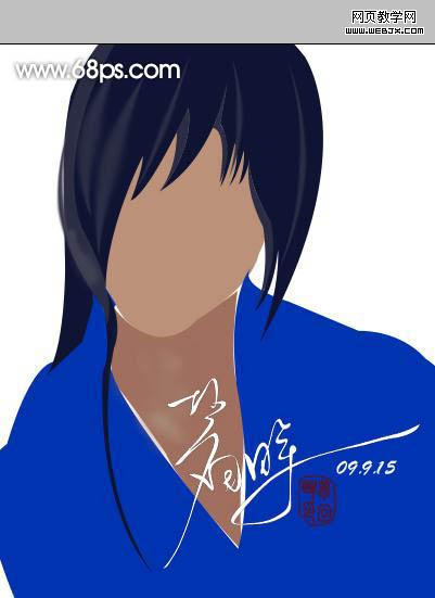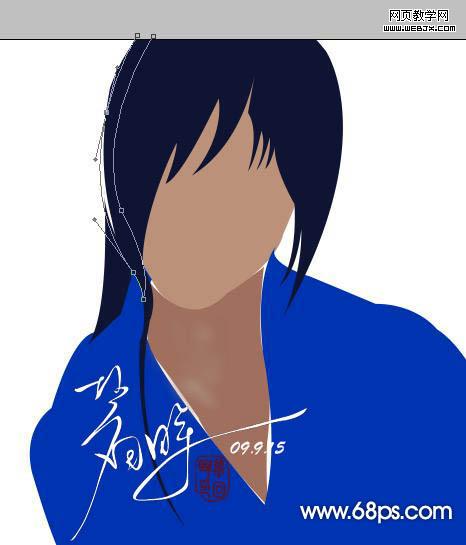 6、新建一個圖層,用鋼筆工具勾出一些輔助頭發(fā)路徑,轉(zhuǎn)為選區(qū)后填充頭發(fā)的顏色。