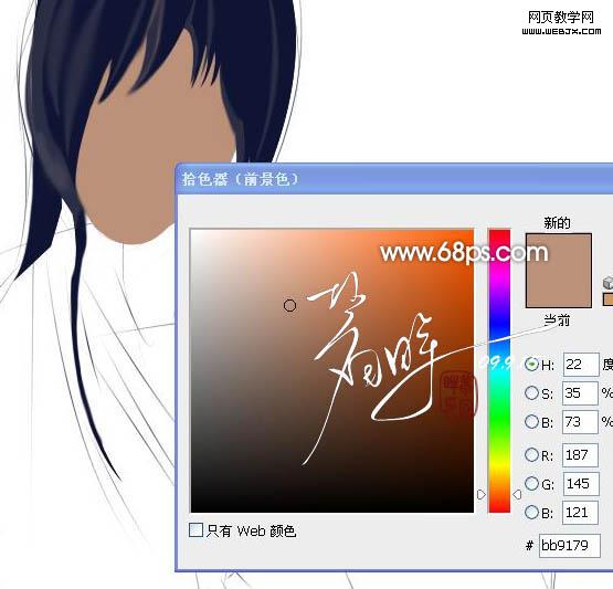 3、同樣的方法勾出臉部選區(qū),新建一個圖層填充顏色:#bb9179 。