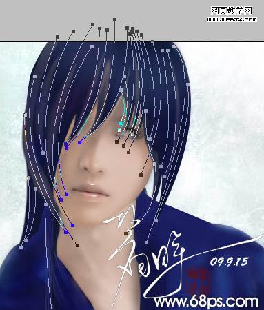 15、新建圖層繪制頭發(fā),用鋼筆工具順著人物頭發(fā)的走勢,勾勒當(dāng)然我這里還沒有畫完的截圖,畫這幾條路徑是不夠的。