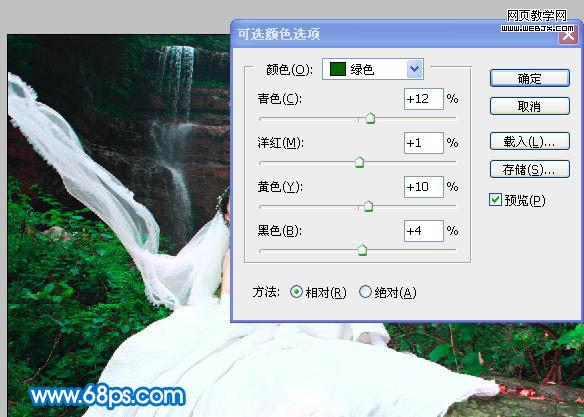 5、創可選顏色調整圖層,對綠色進行調整,參數設置如下圖。