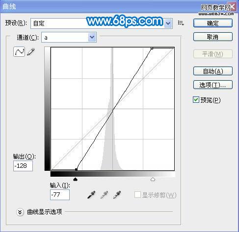 2、選擇菜單:圖像 > 模式 > lab顏色,選擇不合拼,然后創建曲線調整圖層,參數設置如下圖,確定后把圖層不透明度改為:88%。