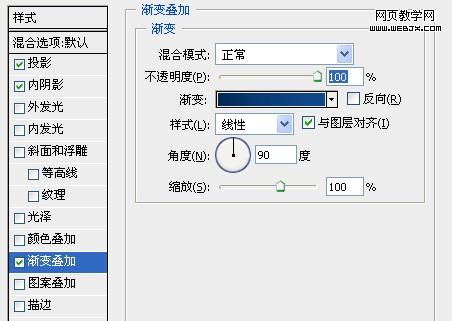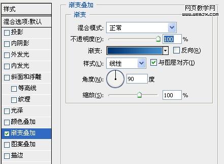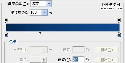 第四步:輸入黑色文字,字體這里用的是:rockwell,大小合適即可。調整字體使其居中。第五步:也是最關鍵的一步,添加文字樣式。漸變疊加,顏色由(#022854)到(#0f498c),中點左移至30%: