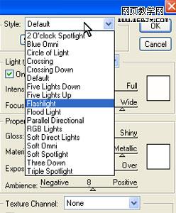 3、為了這個效果我們需要用到一個很窄的柔化光束。所以在對話框頂部的樣式選擇菜單中點選手電筒效果。