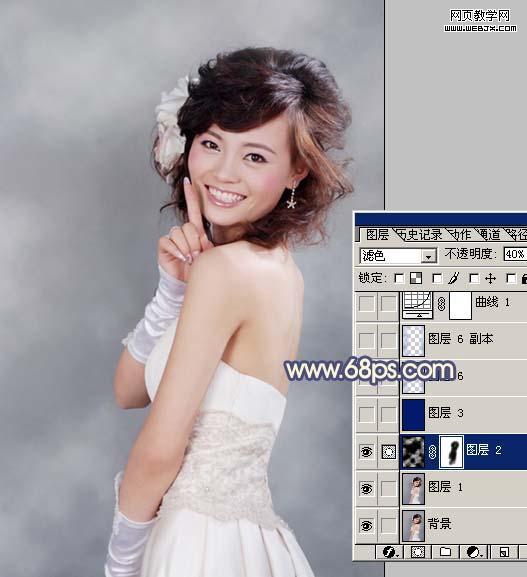 1、打開原圖素材,新建一個圖層,按字母“d”,把前背景顏色恢復到默認的黑白,然后執行:濾鏡 > 渲染 > 云彩,確定后按ctrl + alt + f 加強一次,并按ctrl + m 把對比調大一點效果如圖1。再把圖層混合模式改為“濾色”,圖層不透明度改為:40%,加上圖層蒙版,用黑色畫筆把人物部分擦出來,效果如圖2。