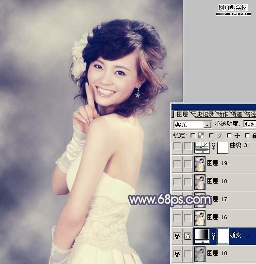 7、創建漸變映射調整圖層,顏色設置如圖10,確定后把圖層混合模式改為“柔光”,圖層不透明度改為:40%,效果如下圖。