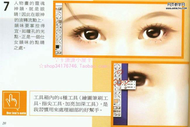 6、設定比較細的筆刷頭,描繪眼睫毛和眼球明度及亮度。