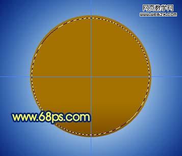 2、新建一個圖層,在圖層的中心位置拉兩條相交的參照線,選擇橢圓選框工具以參照線的交點為中心拉出圖3所示的正圓選區。再選擇漸變工具,顏色設置如圖4,拉出圖5所示的線性漸變。
