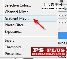 下面我們給陸地上也添加一些顏色。在所有圖層頂端新建一個圖像調整層。漸變映射。使用藍到紅到黃的漸變。