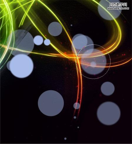 在新圖層上設置為顏色減淡,在光流區域上添加一系列的粒子,這就增添了設計風格的活力。