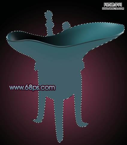2、新建一個圖層,命名為“主體”,用鋼筆工具勾出杯子的輪廓,轉為選區后如圖3,然后把選區部分填充顏色:#425f67,效果如圖4。