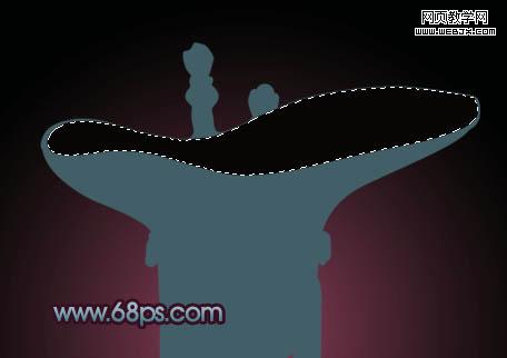3、新建一個圖層,用鋼筆工具勾出杯口部分的選區如圖5,填充顏色:#06090a。