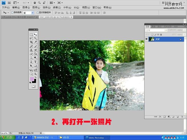 注:如果您的照片太大,而且模板像素稍小的話,您可以先在打開照片后,看一下照片的像素,執(zhí)行圖像—圖像大小—把照片略微縮小些像素。以適應(yīng)模板的像素。(我這里提供的模板的像素是2516x1783),也可以在把照片拖入模板后,如照片太大的話,也可直接按住shift鍵,直接對(duì)其照片進(jìn)行縮放。