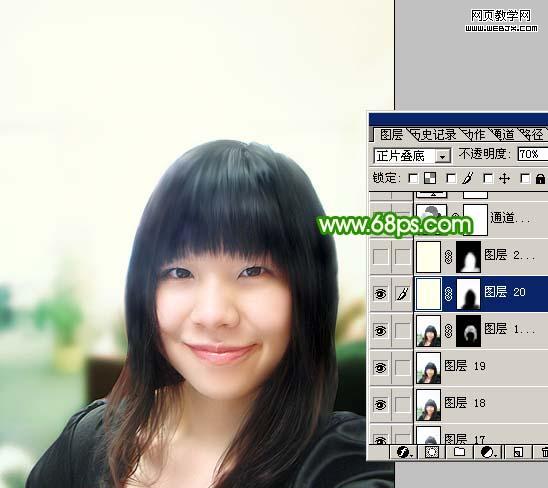 12、新建一個圖層,填充顏色:#feffeb,圖層混合模式改為“正片疊底”,圖層不透明度改為:70%,效果如下圖。