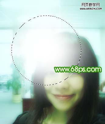 2、新建一個圖層,按ctrl + alt + shift + e 蓋印圖層,執(zhí)行:濾鏡 > 模糊 > 高斯模糊,數(shù)值為5,確定后把圖層不透明度改為:50%,按ctrl + m 適當(dāng)調(diào)暗一點。然后新建一個圖層用橢圓選框工具拉出下圖所示的正圓選區(qū),按ctrl + alt + d 羽化50個像素,然后填充白色,效果如圖6。
