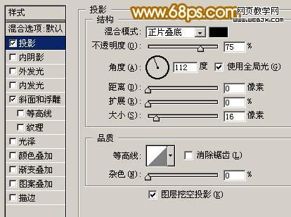 9、取消選區后,雙擊圖層調出圖層樣式,參數設置如圖16,17,效果如圖18。