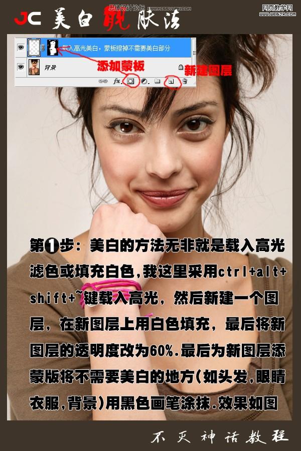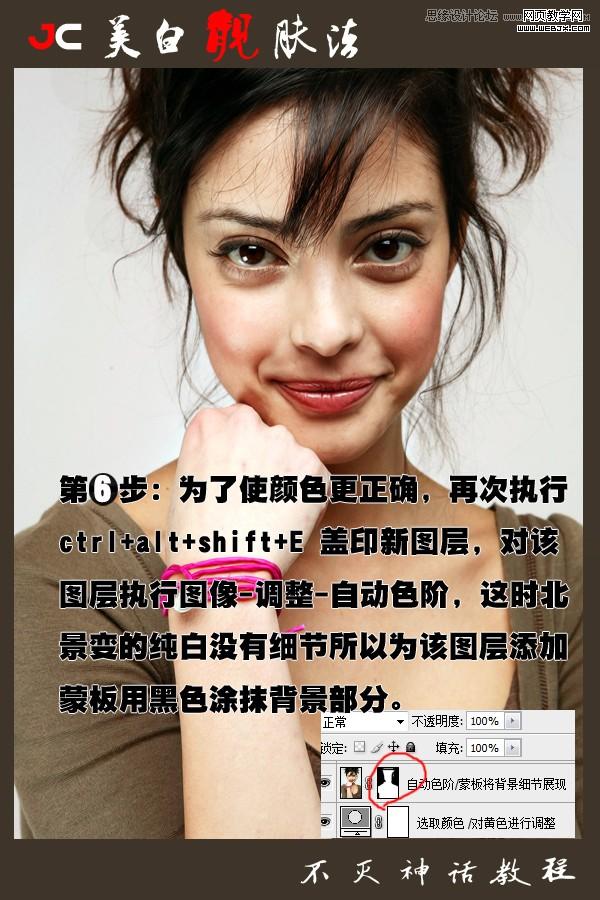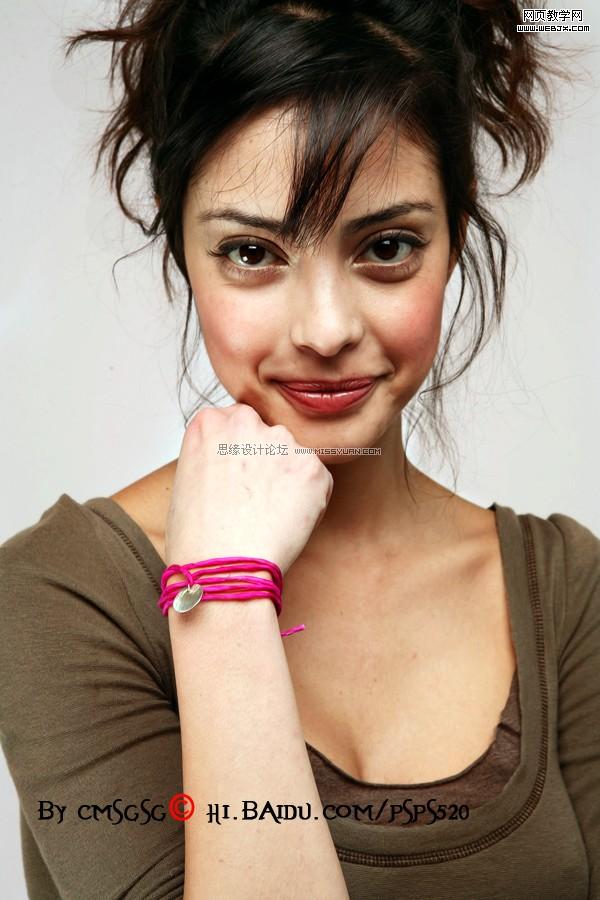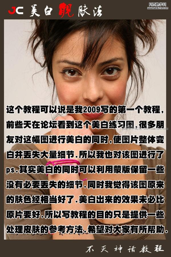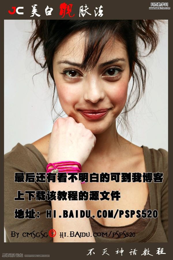本教程主要是大家在給人物美白的同時可以利用蒙版保留一些沒有必要丟失的細節.同時我覺得該圖原來的膚色經相當好了,美白出來的效果未必比原片好.所以寫教程的目的知識提供一些處理皮膚的參考方法.希望對大家有所幫助.