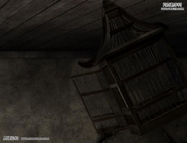 現在開始處理另一個素材,這次是哪個鳥籠,稍后將加入一只從鳥籠逃出的鳥,直飛那幅油畫,想要飛往現實的世界。