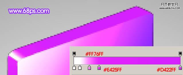 4、新建一個圖層,用鋼筆工具勾出下圖所示的選區,選擇漸變工具,顏色設置如圖6,拉出圖7所示的線性漸變,拉好漸變后不要取消選區,新建一個圖層把左上角部分涂上白色高光,效果如圖8。