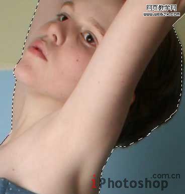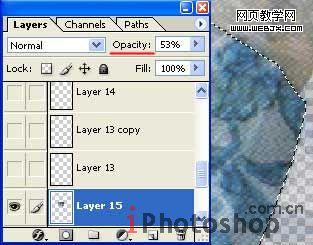 新建層,透明度設(shè)置為53%,并使用多邊形套索工具將mm束胸部分的衣服勾出來。