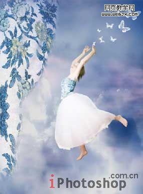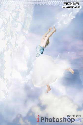 在mm周圍還有小蝴蝶周圍一樣畫些小云彩,使圖片看起來更逼真~