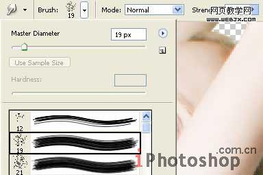下面我們制作風(fēng)中頭發(fā)的效果。使用涂抹工具筆刷,強度設(shè)置為60%。