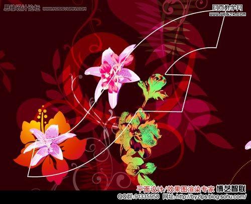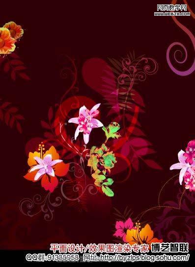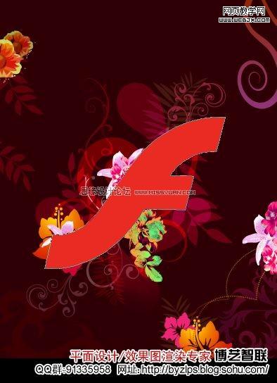 20、根據(jù)前面所講的,結(jié)合畫筆工具、形狀工具、復(fù)制圖層、添加圖層蒙版、設(shè)置圖層混合模式,以及添加圖層樣式等功能,制作文字后面的裝飾圖像,完成制作,最終效果如下圖所示。