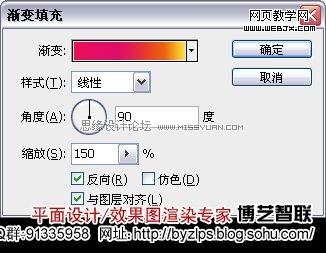 17、單擊創(chuàng)建新的填充或調(diào)整圖層按鈕,在彈出的菜單中選擇“漸變”命令,設(shè)置彈出的對話框,如下圖所示。