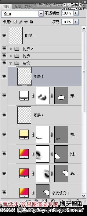 提示:為了方便圖層的管理,在此對制作立體文字輪廓的圖層進(jìn)行編組操作,在下面的操作中,也對各部分進(jìn)行了編組的操作,在步驟中不再敘述。