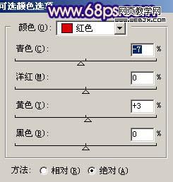 7、創建可選顏色調整圖層,參數及效果如下圖。