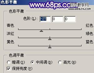 9、創建色彩平衡調整圖層,參數設置如圖13,效果如圖14。