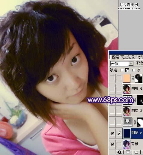 5、新建一個圖層,填充顏色:#fec897,圖層混合模式改為“正片疊底”,圖層不透明度改為:30%。加上圖層蒙版用黑色畫筆把人物部分擦出來,效果如下圖。
