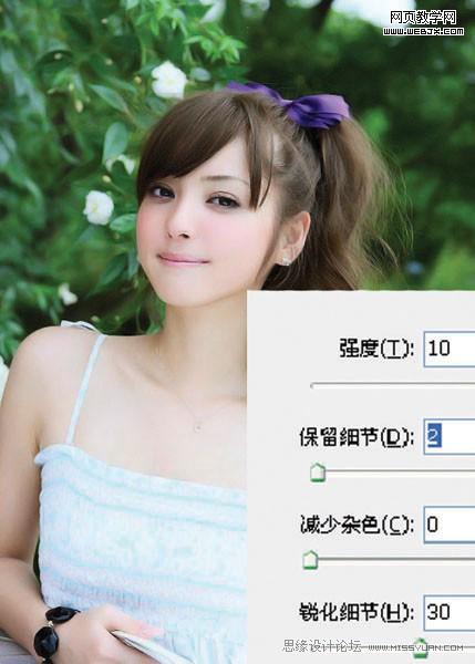 2.圖片看上去雜色較多,新建一個圖層,ctrl+shift+alt+e蓋印圖層,選擇濾鏡—雜色—減少雜色。參數如下圖: