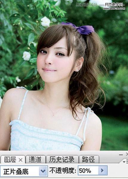 1.打開素材,先觀察一下圖片,感覺光線稍微亮了一點,所以要將圖片調暗一點,ctrl+j復制一層,模式選正片疊底。不透明度降到50%。如下圖: