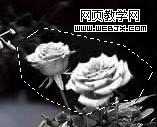 3、大致選中右上角的紅色玫瑰部分,如下圖。按ctrl + u 調整色相/飽和度,選擇紅色,明度+100。