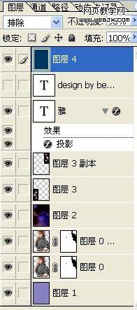⒈把原圖扣出來刪除背景,復制一層,把原圖刪掉。⒉建立新圖層放到復制圖的下面做背景,填充(8781bd)濾色。 ⒊對復制層高斯模糊5.0濾色,調下透明度。 ⒋拉入素材1濾色。 ⒌拉入素材2放右下角,濾色。再復制一層放到右上角。 ⒍打上字。 ⒎新建填充(003562)模式排除。⒏做下邊框