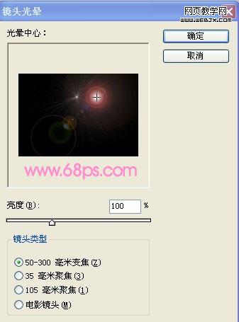4、新建一個圖層得到圖層4,填充黑色。執(zhí)行:濾鏡--渲染--鏡頭光暈,參數(shù)設(shè)置如圖13。確定后將其圖層模式設(shè)為“濾色”,按ctrl+t并對其調(diào)整大小,效果如圖14。