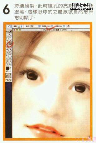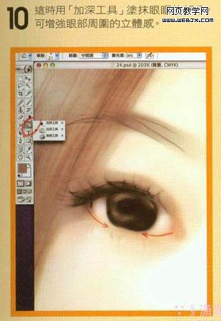 10、這時用加深工具涂抹眼眶的部分。可增強眼部周圍的立體感。