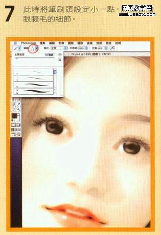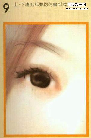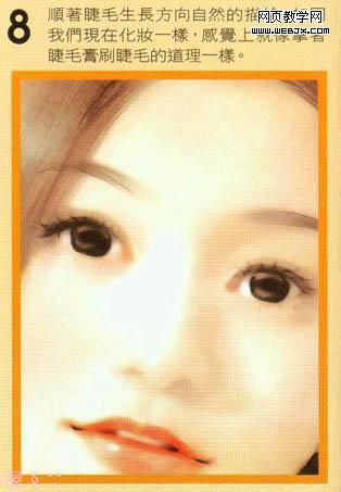 8、順著睫毛生長方向自然描繪,如同我們現在化妝一樣,感覺上就像那著睫毛膏刷睫毛的道理一樣。