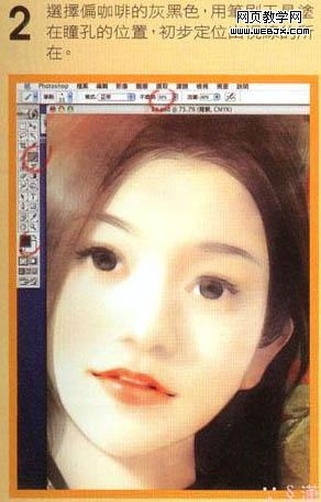 2、選擇偏咖啡的灰黑色,用畫筆工具涂在瞳孔的位置。初步定位出視線的所在。