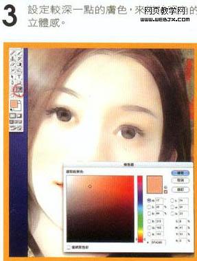 3、設定較深一點的膚色,來描繪眼角的立體感。