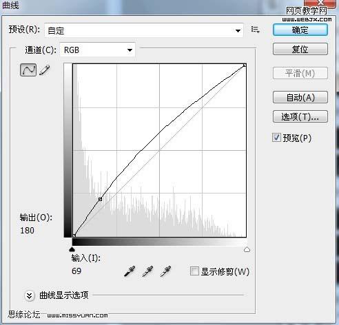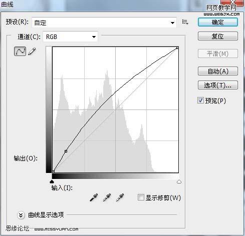 3、建立曲線調(diào)整層,參數(shù)設(shè)置如下圖。確定后用不透明度為50-60的黑色畫筆在圖層蒙版上擦拭人物和樹葉的地方,如圖(最后的圖層截圖)。