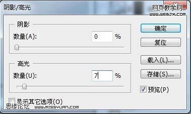 然后執(zhí)行:圖像-調(diào)整-陰影/高光,參數(shù)及效果如下圖: