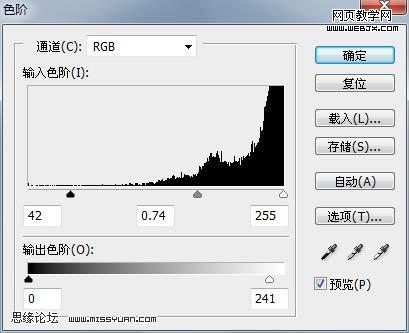 9、使用套索工具選擇人物的頭發(fā)部分,得到選區(qū)后建立色階調(diào)整層,參數(shù)如圖: