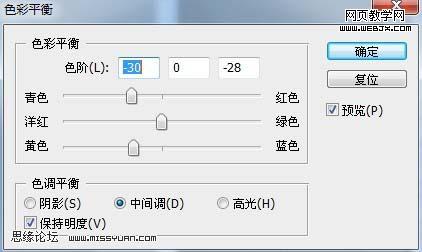 使用套索工具選中眼珠部分,建立色彩平衡調(diào)整層參數(shù)如圖: