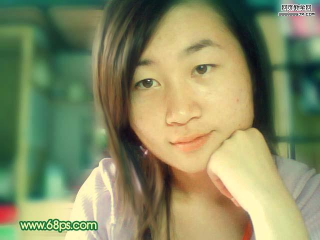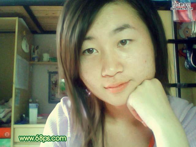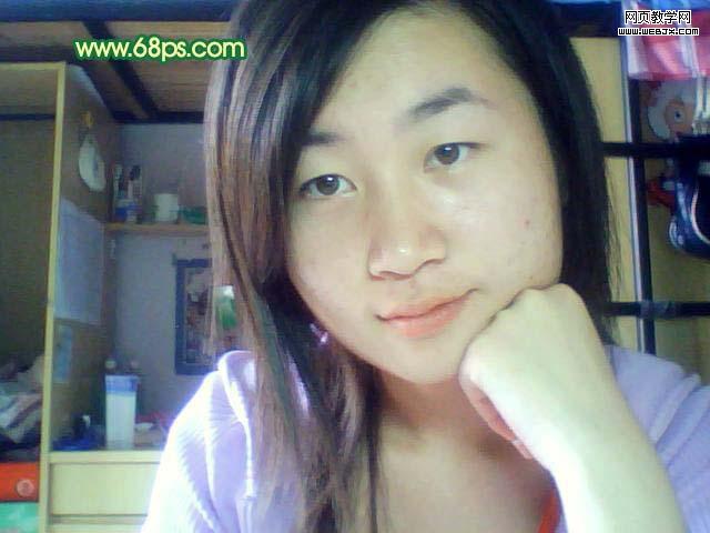 素材圖片像素不是很高,整體感覺有點失真和偏色。處理的時候最好把背景部分換掉或者模糊處理。這樣整個畫面就沒有那么雜亂。人物部分重點在磨皮和細節的處理。色調可以按照自己的喜好調整。