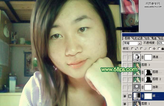 8、新建一個圖層,蓋印圖層,適當給人物磨下皮,最好用手工磨皮,方法自選。然后再用加深工具把人物五官部分的輪廓加深一點,效果如下圖。