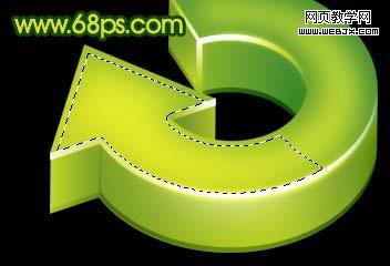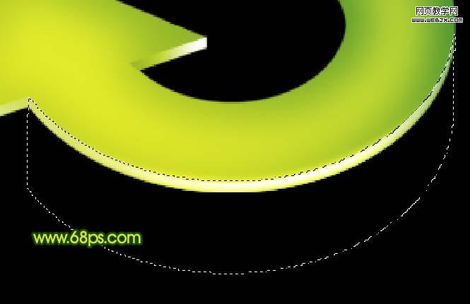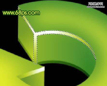 5、把“上表面”圖層復(fù)制一層,用鋼筆勾出下圖所示的選區(qū),按ctrl + alt + d 羽化5個(gè)像素,按ctrl + shift + i 反選,按delete 刪除。取消選區(qū)后鎖定圖層,填充顏色:#d4e036,圖層混合模式改為“顏色減淡”,效果如圖9。