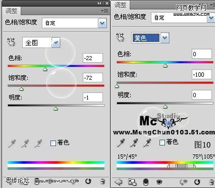 6.建立一個“色相飽和度”調整圖層,參數如下圖七,效果為圖七a。