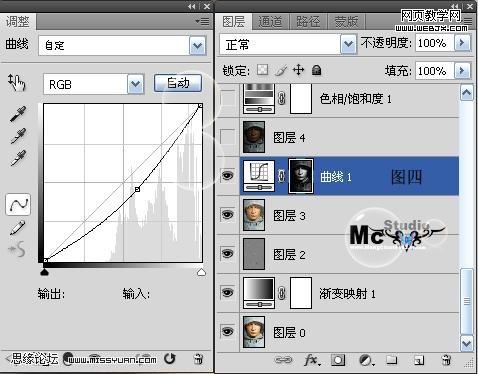4.按住ctrl鍵,載入alpha2的高光選區,建立一個“曲線”調整圖層。參數如圖4: