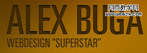 alex buga網站的logo,我覺得是凹陷字體的典范.而這樣的字體效果很明顯有一種凹陷在背景里的感覺,甚至文字像是刻在石頭上一般. 如果你已經完成了第一個文字效果,那么接下來的內容對你是相當簡單的.